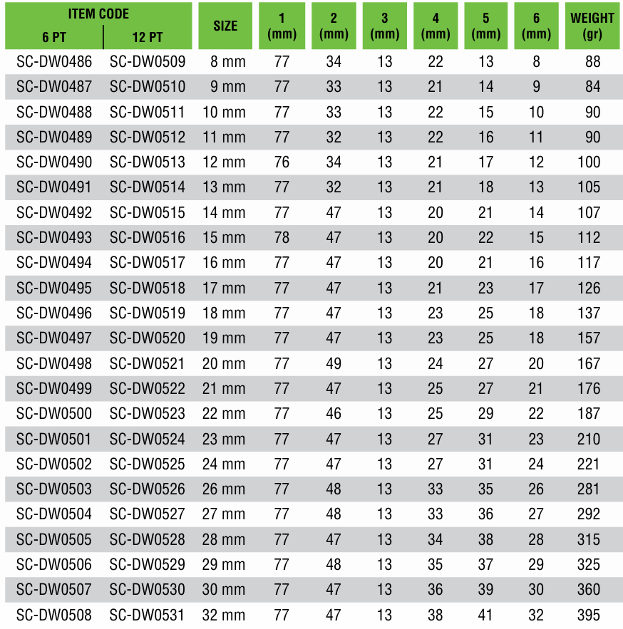 Tekiro SC-DW0490 Tkr 1/2" Dr. K Sock Deep Wall 6 Pt 12 Mm (sm)